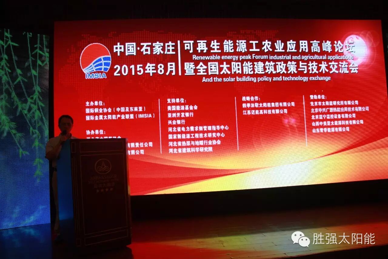 胜强公司通过“2015第二届中国可再生能源工农业利用高峰论坛”此次的成功合作,让国内众多知名新能源产业的企业更加了解胜强太阳能公司的实力及产品优势,胜强正在努力成为中国新能源领域的整合创新者”,并愿与业内知名企业一道为光热产业的健康发展作出应有的贡献,世界新能源胜强有精彩!